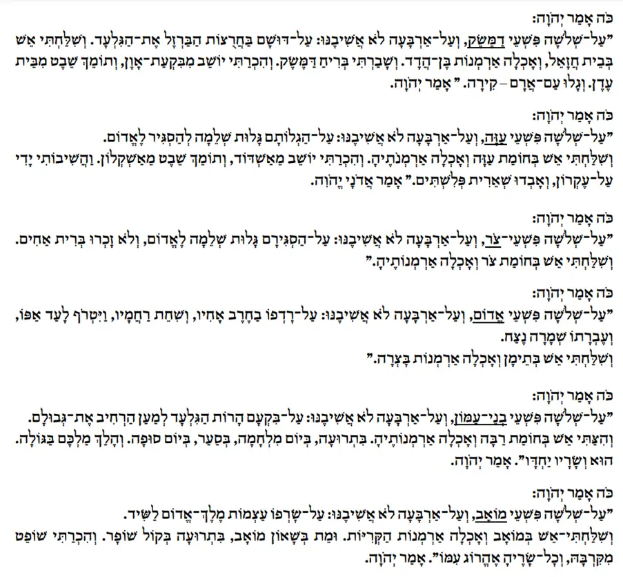 לאחרונה מדברים על נבואת עמוס העוסקת בחורבן דמשק, עזה, צור ותימן, ועל כמה שהיא דומה לאירועים בתקופה הנוכחית.
